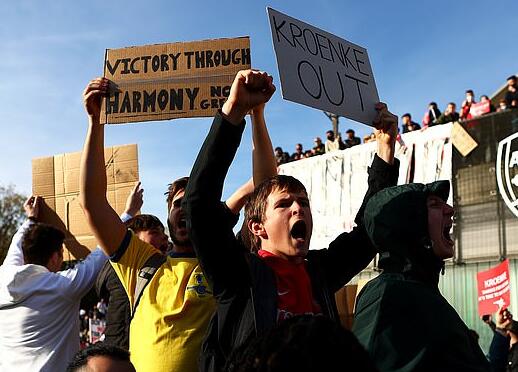 欧超联赛的谋划,彻底激怒了各队的球迷。在酋长球场外,有阿森纳球迷对克伦克的人偶执行了“绞刑”,还有大批球迷打出“克伦克滚蛋”的标语。