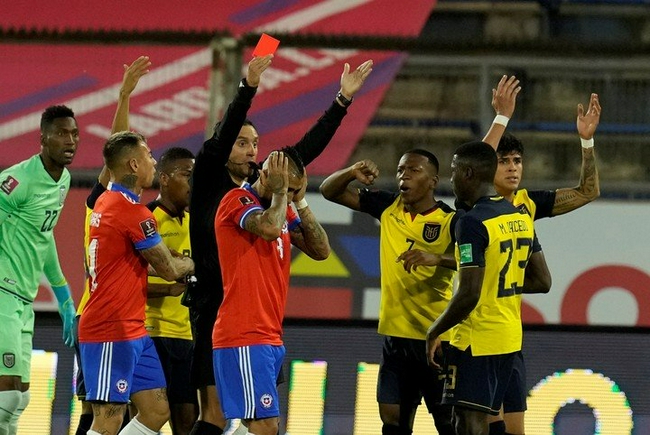 比达尔的动作让智利早早就少一人作战,最终智利0比2输球。目前智利只排在南美区第六位,落后第五名的秘鲁和第四名的哥伦比亚都是1分,要出线必须努力了。